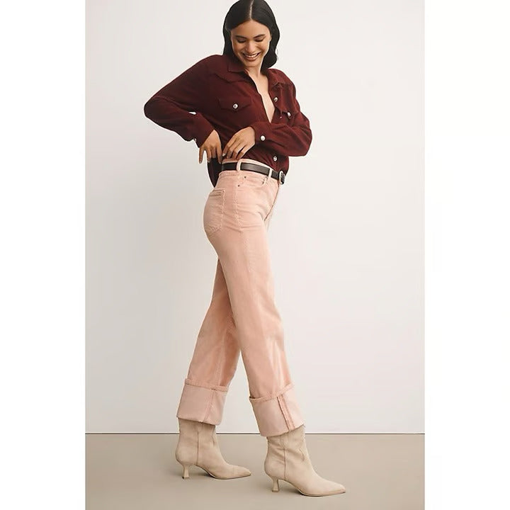Anthropologie Pilcro Scotty Cuffed High Rise Straight Leg Jeans Corduroy